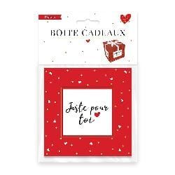 La boite que tous vos cadeaux méritent. Cette boîte rouge et blanche est ornée de l’inscription « Juste pour toi », avec des motifs de cœurs et de points dorés. Elle est idéale pour sublimer vos surprises et rendre vos moments encore plus mémorables.