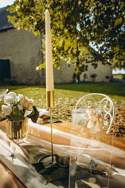 Le doré capte délicatement la lueur de la bougie et apporte une touche chaleureuse, sans surcharger la décoration.