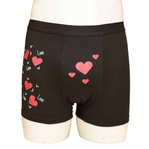 Affichez votre côté séducteur avec ce boxer noir orné de cœurs rouges et du mot Love. Sa coupe ajustée épouse les formes avec confort, tandis que sa matière douce assure un port agréable toute la journée… ou toute la nuit.