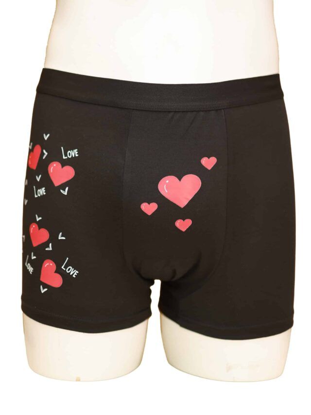 Affichez votre côté séducteur avec ce boxer noir orné de cœurs rouges et du mot Love. Sa coupe ajustée épouse les formes avec confort, tandis que sa matière douce assure un port agréable toute la journée… ou toute la nuit.