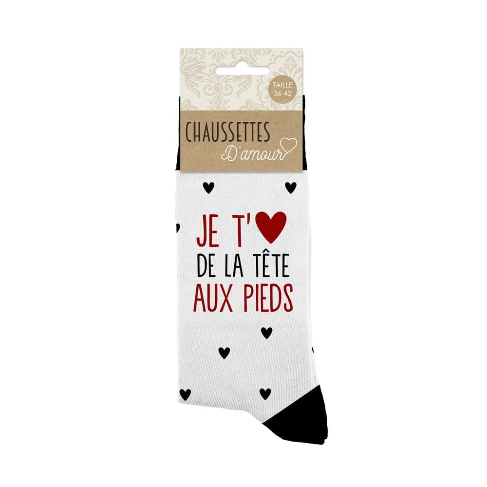 - Un message tendre et amusant : Avec l’inscription « Je t’aime de la tête aux pieds », ces chaussettes apportent une déclaration originale et chaleureuse.