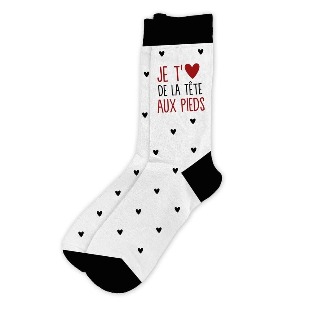 Exprimez votre affection avec ces chaussettes « Je t’aime de la tête aux pieds ». Commandez-les dès maintenant pour un cadeau qui fait sourire et réchauffe le cœur… et les pieds !