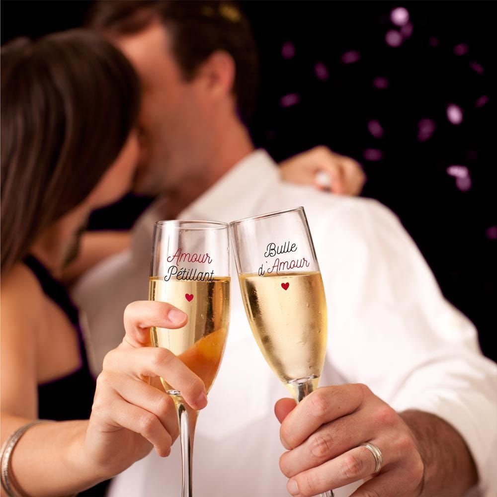 - Deux flûtes, deux déclarations : « Bulle d’amour » et « Amour pétillant », de quoi accompagner chaque gorgée de romantisme.