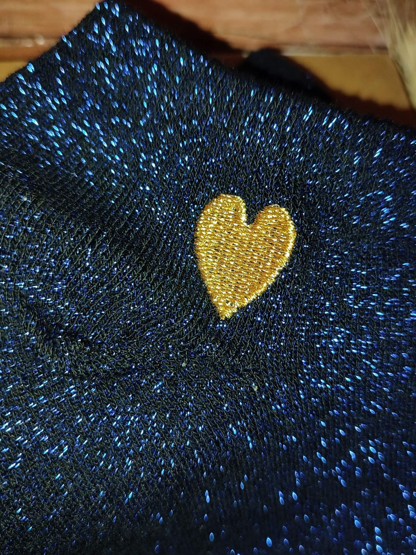 Qui a dit que la séduction passait forcément par la lingerie ? Ces socquettes sexy bleues à paillettes prouvent que parfois, ce sont les détails qui font toute la différence. Entre leur teinte bleu nuit envoûtante, leur brillance subtile et ce petit cœur doré brodé, elles sont l’arme secrète des espiègles élégantes.